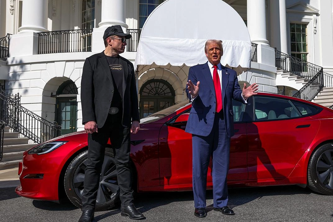 ABD Başkanı Trump, Musk ile beraber kameralar karşısına geçerek, Beyaz Saray'ın bahçesine getirilen Tesla araçlarla poz verdi.