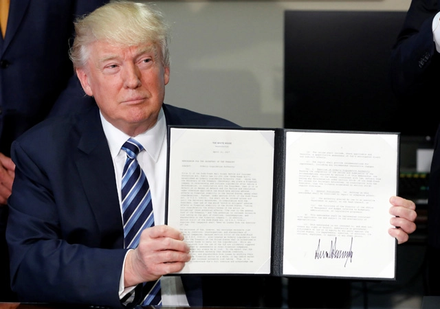 ABD Hazine Bakanlığında düzenlenen törende kararnameleri imzalayan Trump, böylece Hazine Bakanı Steven Mnuchin'e üç alanda araştırma yaparak 150 gün içinde Beyaz Saray'a rapor hazırlaması için emir vermiş oldu.