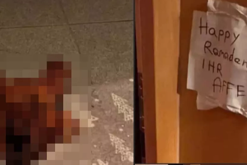 Henüz kimliği belirlenemeyen bir şüpheli, ailenin evinin önüne domuz kafası ve kapı kenarına ramazan ayı ile aileye yönelik hakaret içeren bir yazı bıraktı.
