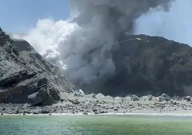 Aktif yanardağlardan White Island, 14:11'de hareketlenmeye başladı. Volkandan lavlar gelmeye başlamadan önce, bir grup turist çevrede yürürken görülmüştü.