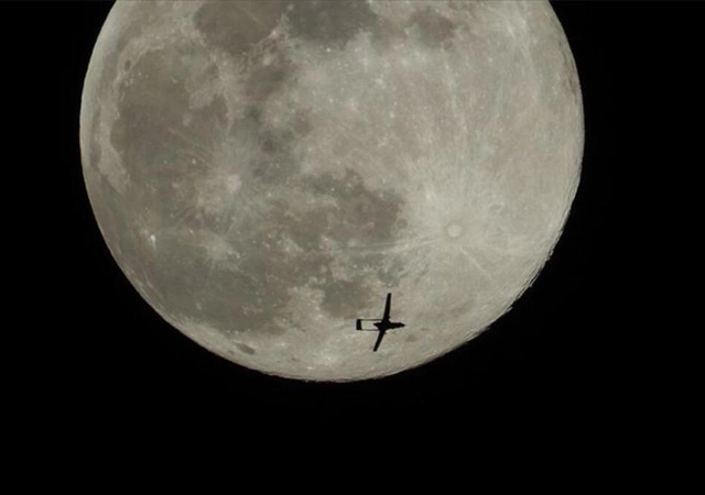 İHA, dolunayın önünden geçiyorken objektife takıldı.