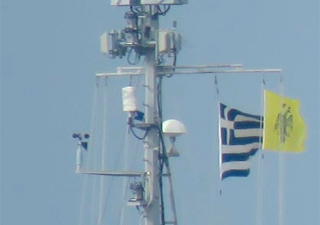 Bu kez de bir Yunan karakol gemisinin Bizans bayrağı takarak İzmir Karaburun yakınlarına geldiği ve burada Türk Deniz Kuvvetleri'ne ait gemileri taciz etmeye çalıştığı ortaya çıktı.