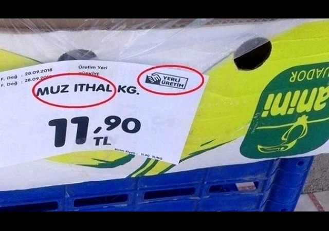 Ticaret Bakanlığınca Türkiye'de üretilen mallar için etiketlere yerli olduğunu belirtir nitelikte ayırt edici işaret konulması zorunluluğu getirilmişti. Fırsatçılar bunu da kullanmanın yolunu buldu. İthal muz yazan ürüne yerli üretim etiketi yapıştırdılar!