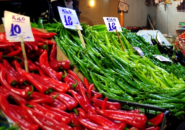 Bayraktar, 'Fiyatı en fazla düşen ürün yüzde 53 ile sivri biber oldu. Sivri biberden sonra sırasıyla fiyat düşüşlerini patlıcan ve salatalık izledi.' diye konuştu.
