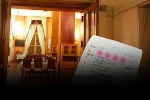 Buna göre; toplam hesap 1082 lira, 8 kişiye sunulan garson hizmeti (Kuver) için kişi başına 6 lira alındı.
