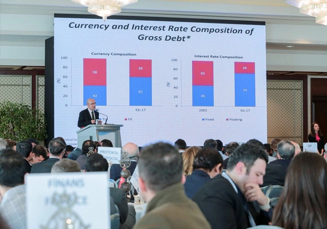 "Hane halkının, devletin, bankaların ve reel sektörün borçlarına bakarsanız, bütün borçların milli gelire oranı yüzde 144. Gelişmekte olan ülkelerde bu ortalama yüzde 219. Dolayısıyla Türkiye'nin bilançosu iddia edildiği gibi kötü değil. Bankacılık sektörünün döviz açık pozisyonu yok. Nötr bir döviz pozisyonu var.