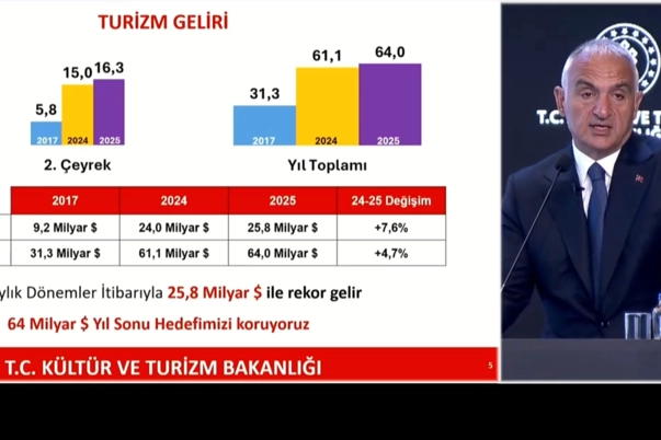Kültür ve Turizm Bakanı Mehmet Nuri Ersoy, 2025 Yılı İkinci Çeyrek Turizm Verilerini açıkladı.