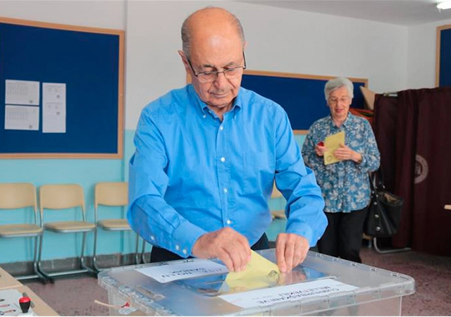 Şahin Sevin İlkokulu'na gelen Sezer çifti, 1158 numaralı sandıkta oyunu kullandı.