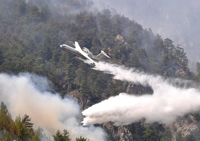 Yatağan ilçesinden Çine'nin Akçaova Mahallesi'ne ulaşan ve rüzgarın etkisiyle yeniden Yatağan ilçesine yönelen orman yangınını söndürme çalışmalarına havadan da destek veriliyor.