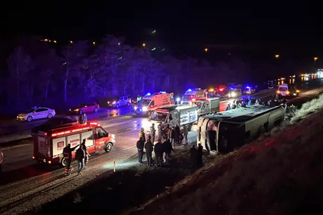 Çankırı'da işçileri taşıyan otobüsün devrilmesi sonucu 23 kişi yaralandı.