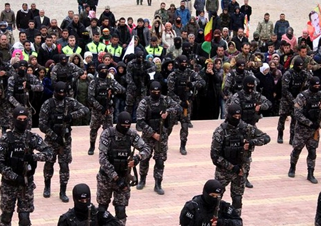 Türkçe Konuşan Ülkeler Uluslararası Gazeteciler Derneği (TKÜUGD) Suriye Medya Ofisi, Suriye'de oluşturulan sözde Polis Özel Kuvvetleri Birimleri'nin (HAT) fotoğraflarını yayımladı.