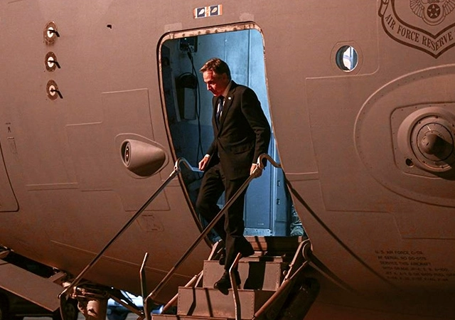 Antony Blinken ve beraberindeki heyeti Ankara'ya getiren uçak, saat 23.58'de Esenboğa Havalimanı'na indi.