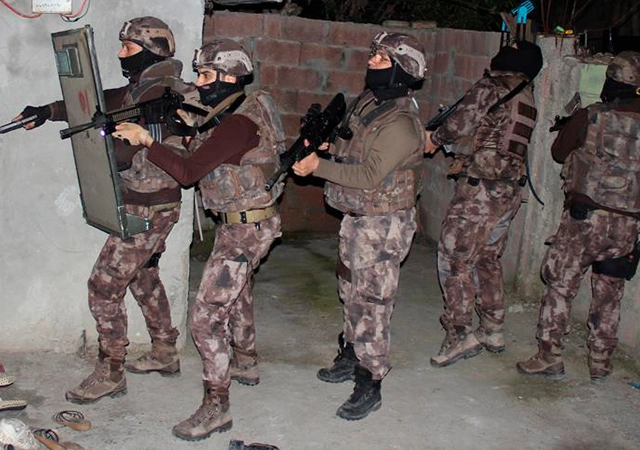 13 KİŞİ GÖZALTINA ALINDIGeniş güvenlik önlemi alınan operasyonda, özel harekat ekipleri bazı evlere "koçbaşı" ile kapılarını kırarak girdi.Operasyonda 12'si Suriye uyruklu 13 kişi gözaltına alındı. Aramalarda ele geçirilen dijital malzemelere ise incelenmek üzere el konuldu.Şüphelilerin, ABD Adana Konsolosluğunun da aralarında bulunduğu bazı binalara yönelik eylem arayışında oldukları iddiasıyla gözaltına alındığı öğrenildi.