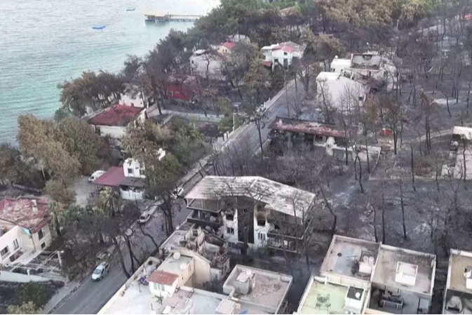 ÇANAKKALE'DE YANAN VİLLALAR SABAHIN İLK IŞIKLARIYLA GÖRÜNTÜLENDİ