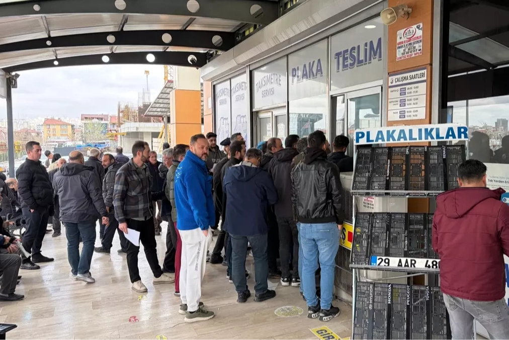 Sürenin sona ermesiyle birlikte yasal yaptırımlarla karşılaşmak istemeyen vatandaşlar, sabah saatlerinden itibaren plaka basım atölyeleri önünde kuyruk oluşturdu.