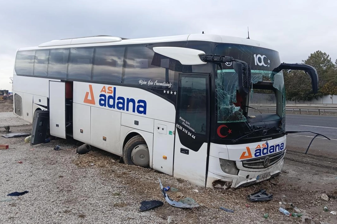 Adana-Ankara seferini yapan E.U. idaresindeki şehirler arası yolcu otobüsü, Gölbaşı ilçesi yakınlarında kontrolden çıkarak yol kenarındaki beton bariyerlere çarptı.