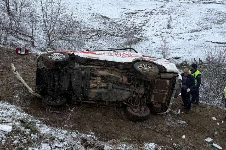Ilıca köyünden aldığı hastayı Şavşat Devlet Hastanesine götüren Kamil Can Pektaş idaresindeki ambulans, Çoraklı köyü mevkisinde uçuruma devrildi.