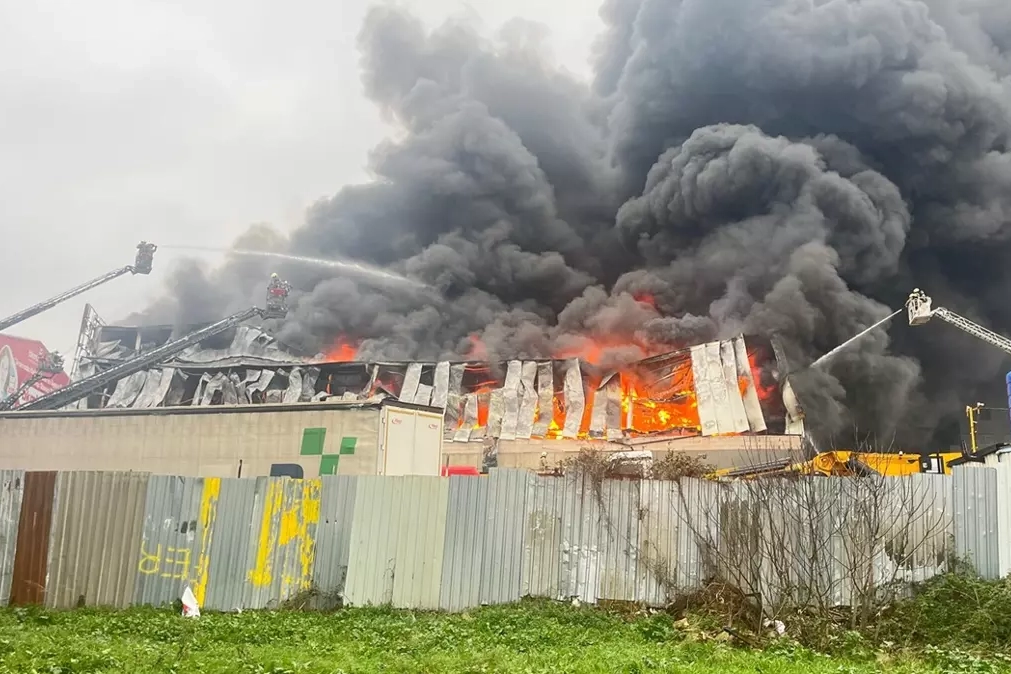 Alevlerin yükseldiği ve yoğun duman oluşan yangına, ekiplerin müdahalesi sürüyor.