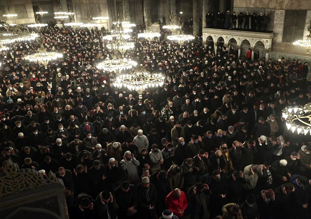 Cami avlusu ve kapısında uzun kuyruklar oluştu. Ayasofya Camii içine sığmayan cemaat dışarda namazlarını eda etti.Namazın ardından dualar edildi, salavatlar ve tekbirler getirildi.