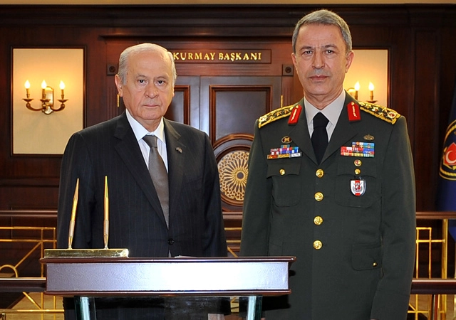 Devlet Bahçeli, Genelkurmay Başkanı'nın eleştiri konusu yapılmasının doğru olmadığını belirterek "Şu anda çok yönlü bir savaş hali var. Suriye, Irak, ABD ve Almanya ile uğraşırken komutanı tartışmaya açmak tarihi hata olur. Komutanı incitmemek lazım. Daha FETÖ'nün kim olduğunu tespit etmeden herşeyi Genelkurmay Başkanı Akar'a yüklemek doğru değil"