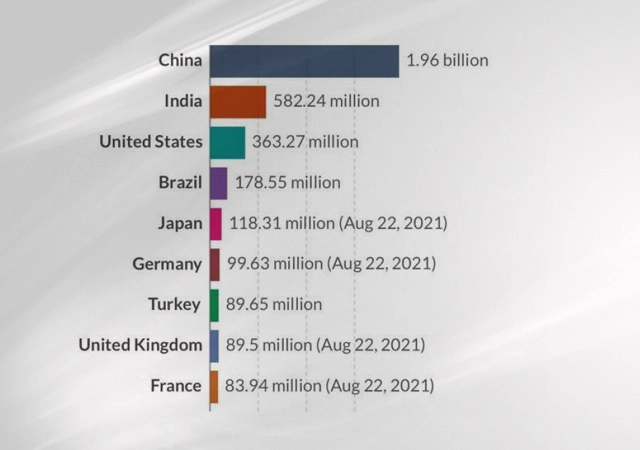 Listenin ilk sırasında ise 1 milyar 96 milyon doz sayısıyla Çin yer alıyor.
