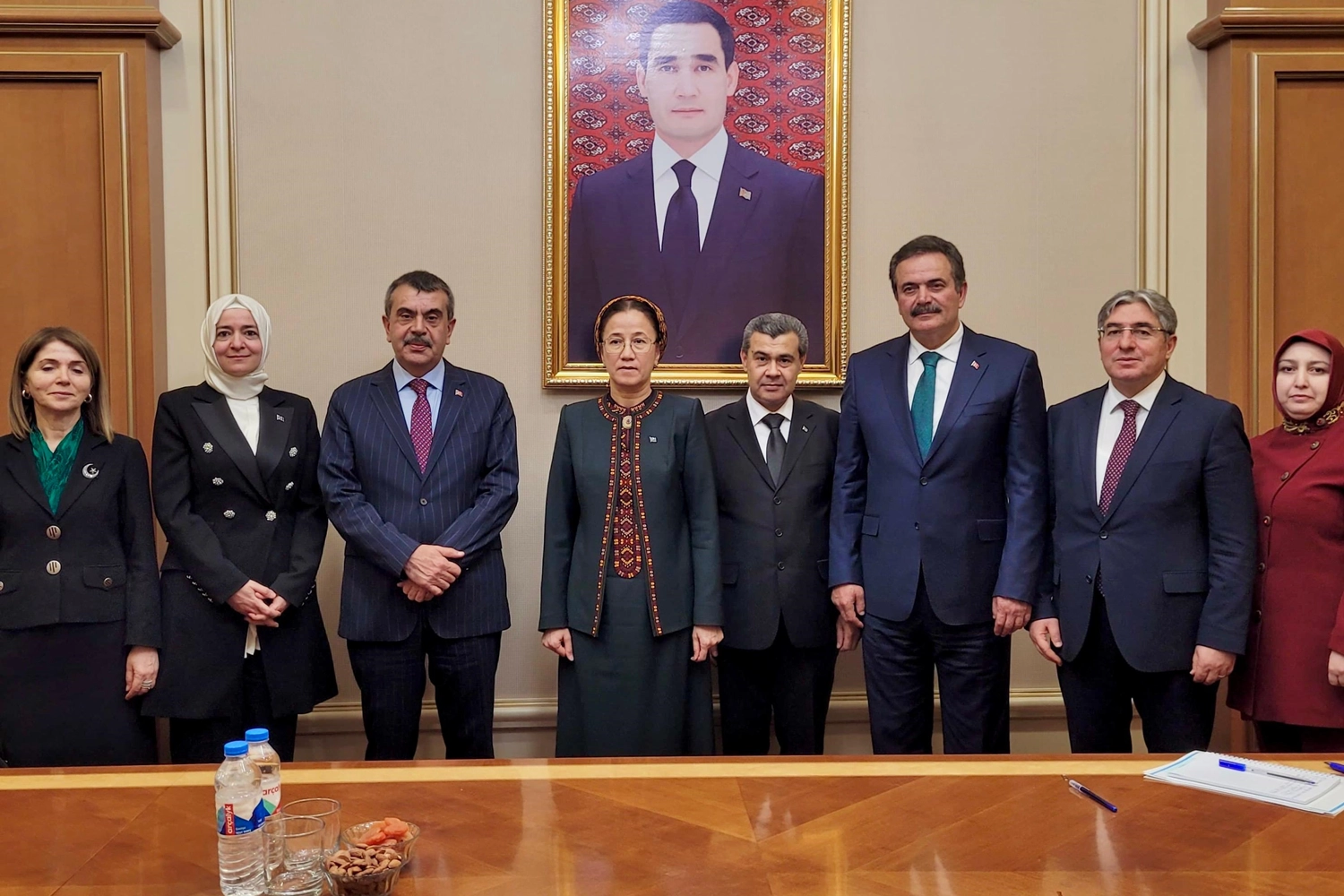"Ortak Türk-Türkmen Okulu ile ilgili desteklerinden dolayı Türkmenistan tarafına teşekkür ederim. Ayrıca karşılıklı olarak müfredatlarımızın gözden geçirilmesi bizim için önemli. Ortak tarihimize ve kültürümüze ilişkin müfredatlarımızda yer almasını arzu ettiğiniz konuları birbirimizle paylaşarak beraberce bu hususları değerlendiririz. Karşılıklı işbirliğini geliştirmek için atılacak bir adım varsa harekete geçmeye hazırız. Kardeşlik hukuku için eğitim işbirliği anlaşmasının imzalanmasının hızlanması elzemdir. Ortak yapacağımız çalışmalar dünya mirası için önemlidir."