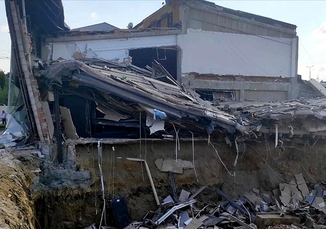 İş yeri yetkililerinden çökme anında binada kimsenin bulunmadığına ilişkin bilgi alan ekipler, tedbir amaçlı incelemelerini sürdürüyor.