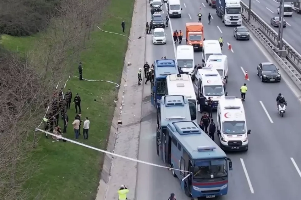 TEM Otoyolu Edirne istikameti İkitelli mevkisinde 4 cezaevi nakil aracının karıştığı zincirleme trafik kazası meydana geldi.