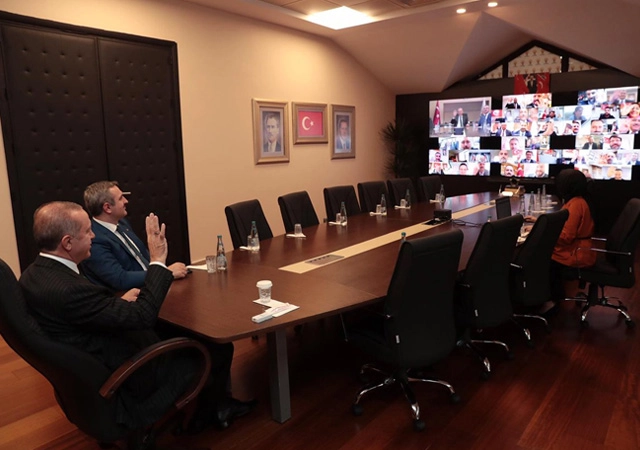 Cumhurbaşkanı Recep Tayyip Erdoğan, İstanbul AK Parti ilçe başkanları ile telekonferans yoluyla görüştü.