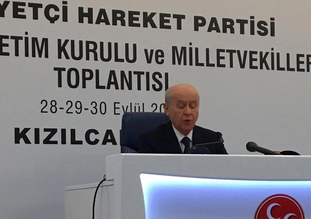 MHP Genel Başkanı Devlet Bahçeli, partisinin Kızılcahamam'da gerçekleştirilen Merkez Yönetim Kurulu ve TBMM Grubu ortak toplantısının kapanış oturumu sonrasında basın toplantısı düzenledi.