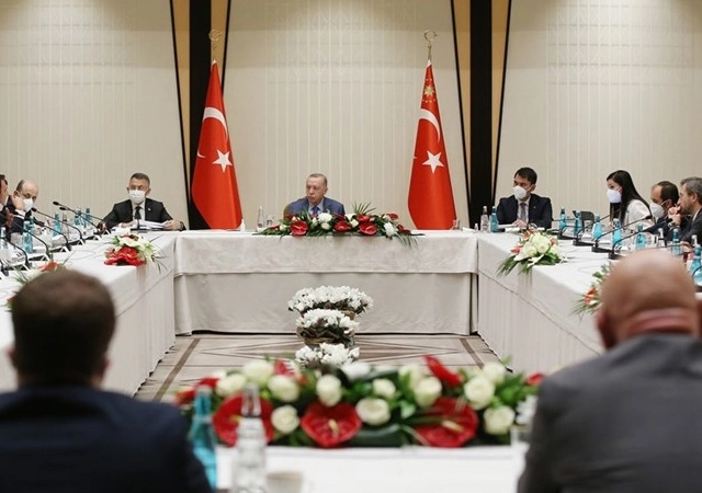 Cumhurbaşkanlığı Külliyesi'ndeki toplantıda, denizlerdeki müsilaj sorununun çözümüne yönelik bilimsel yöntemler masaya yatırıldı.
