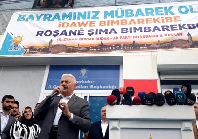Burada partililerle bayramlaşan Yıldırım, il binası önünde vatandaşlara hitaben yaptığı konuşmasına Kürtçe, "Nasılsınız? İyi günler. Bayramınız kutlu olsun. Günümüz mübarek, geleceğimiz aydınlık olsun." diyerek başladı.