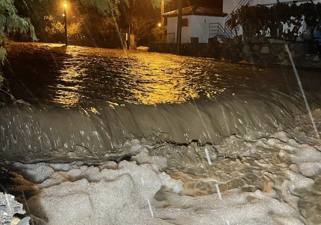 Marmaris'e son 24 saatte 145 kilogram yağış düştü. Birkaç gündür süren sağanak, gece saatlerinde etkisini artırarak taşkınlara neden oldu.