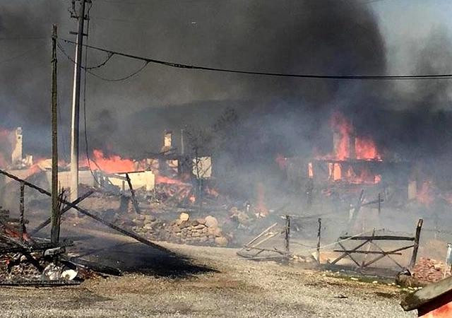 Alınan bilgiye göre bazı büyük ve küçükbaş hayvanın kayıp olduğunu aktaran Ümit, "Tesellimiz; can kaybımız yok. Gelen bilgiye göre, 12 ev yandı." diye konuştu.