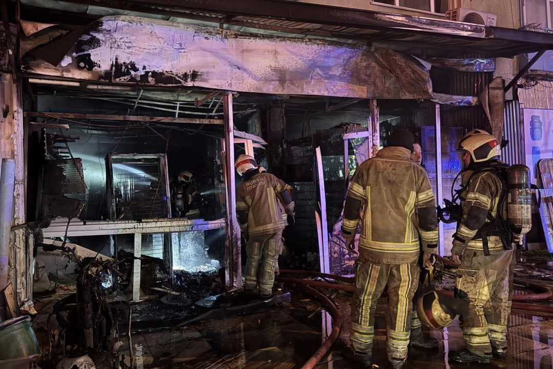 Yangın nedeniyle iş yerinde ve evde hasar oluştu.
