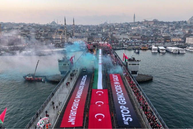 İsrail zulmü altındaki Gazze için tüm dünya susarken, vicdanın sesini haykıran Türkiye, 2025'in ilk gününde, Filistinli kardeşleri için yine meydana çıktı. Geçen yıl 250 bin kişinin katıldığı Gazze buluşması, bu yıl yine Galata Köprüsü'nde düzenlendi.