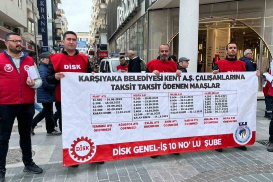 İzmir'in Karşıyaka Belediyesi iştiraki Kent AŞ'de çalışan yaklaşık 540 işçi, maaşlarını düzenli alamadıkları ve görev yerlerinin değiştirilmek istendiği iddiasıyla gösteri yürüyüşü gerçekleştirdi.