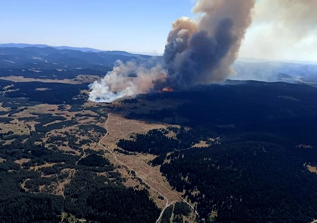 Ekipler, havadan ve karadan müdahaleyle yangını kontrol altına almaya çalışıyor.