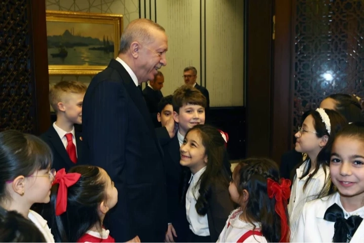 Cumhurbaşkanı Recep Tayyip Erdoğan, 23 Nisan Ulusal Egemenlik ve Çocuk Bayramı kapsamında Millî Eğitim Bakanı Yusuf Tekin ve beraberindeki çocukları 23 Nisan 2026 tarihinde Cumhurbaşkanlığı Külliyesi’nde kabul etti. Kabulde çocuklarla bir araya gelen Erdoğan, bayram mesajlarını paylaşırken törende yaşanan bazı anlar dikkat çekti. Programda verilen mesajların önümüzdeki dönemde çocuklara yönelik politikalara nasıl yansıyacağı merak konusu oldu.