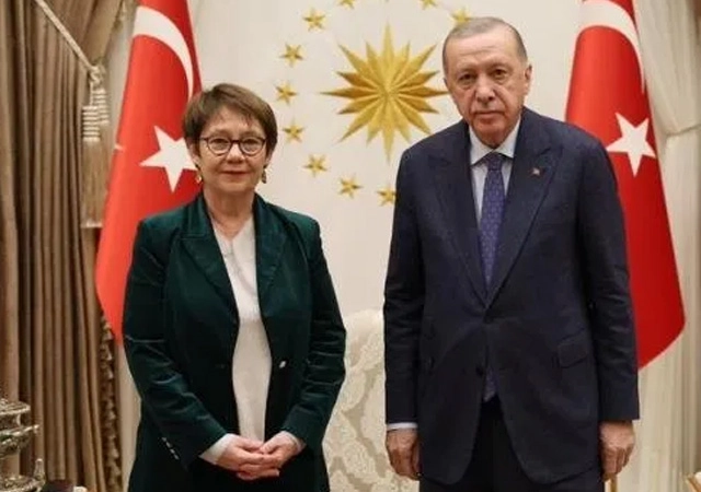 Cumhurbaşkanı Recep Tayyip Erdoğan, Avrupa İmar ve Kalkınma Bankası Başkanı Odile Renaud-. Basso'yu kabul etti. Cumhurbaşkanlığı Külliyesi'ndeki kabul, basına kapalı olarak gerçekleşti.