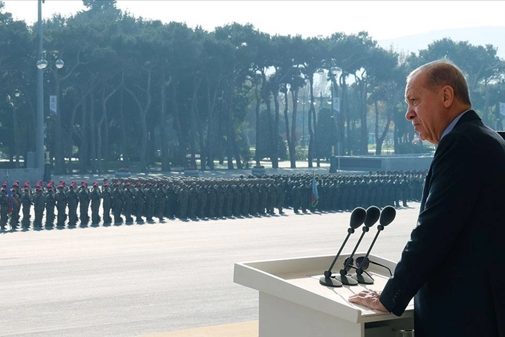 Karabağ Zaferi'nin sadece büyük bir adaletsizliği sonlandırmakla kalmayıp bölgede yeni bir dönem başlattığını belirten Erdoğan, "Vatan muharebesi, Asya ve Avrupa'daki jeopolitik dengeleri de değiştirdi. Ne geçmişin acılarını unuturuz ne de kin güderiz. Bu zaferi Kafkasya'da kalıcı barış yolunda bir kilometre taşı olarak değerlendiriyoruz." dedi.