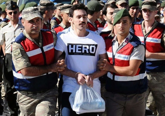 Cumhurbaşkanı Recep Tayyip Erdoğan'ın Marmaris'te kaldığı otele, 15 Temmuz darbe girişimi gecesi saldırı düzenleyen 1'i firari 37 darbeci askerin aralarında bulunduğu 44'ü tutuklu 47 sanığın yargılandığı Muğla 2. Ağır Ceza Mahkemesi'ndeki duruşma öncesi sanık askerlerden astsubay Gökhan Güçlü'nün giydiği 'hero' tişörtünün sırrı çözüldü.