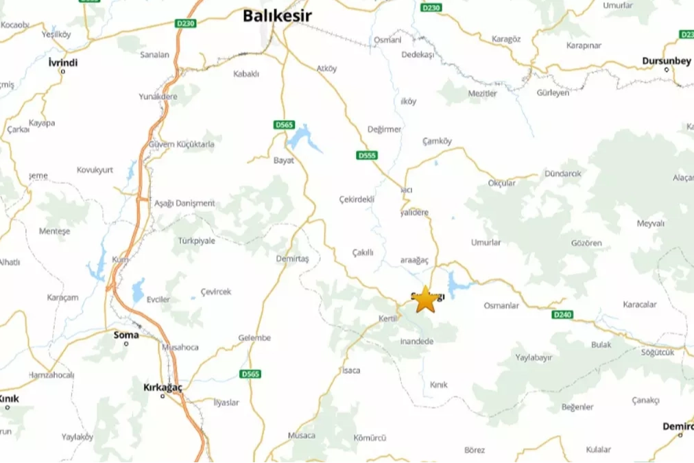 Balıkesir'in Sındırgı ilçesinde saat 07.45'te 4 büyüklüğünde deprem meydana geldi.
