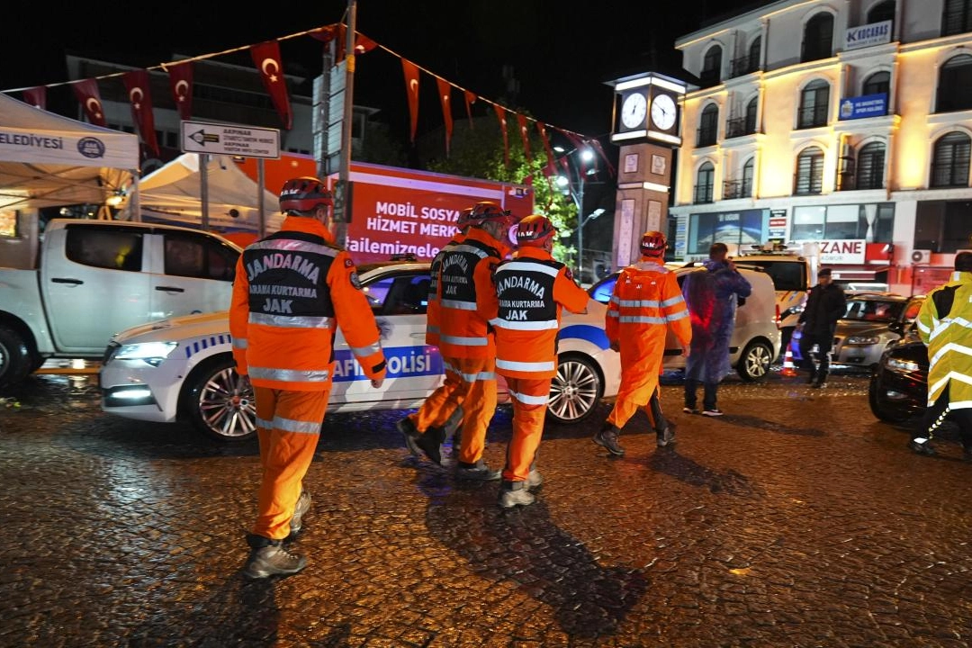 Bölgede hasar tespiti ve yardım çalışması yapan ekipler, şiddeti giderek artan sağanak altında çalışmakta zorlandı.
