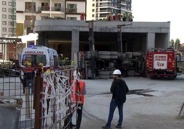 İstanbul'un ilçesi Bağcılar'ın Bosna Caddesi'nde olan bir inşaat alanında çalışan vinç devrildi.