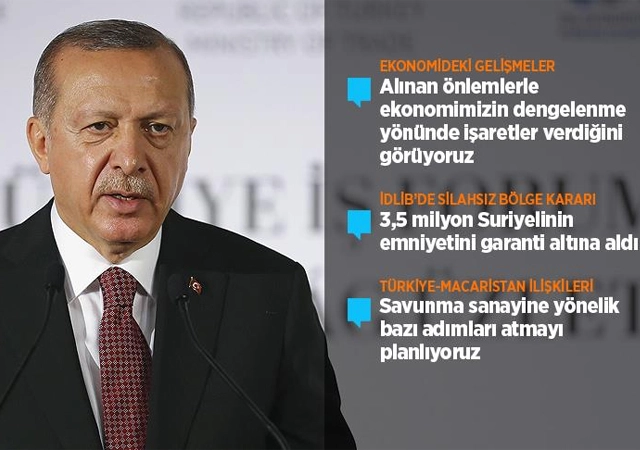 Son birkaç aydır spekülatif ekonomik saldırılar var. Türkiye'nin Suriye ve Irak'ta kendi huzuru ve güvenliğini sağlamak için attığı adımlar bazı çevreleri rahatsız etmiştir. YPG'nin işgalinde olan bölgelerde, şimdi yüzbinler huzur içinde yaşıyor. Soçi Mutabakatı ile 3.5 milyon insanın güvenliğini garanti altına almıştır. 4 milyon mülteciye ev sahipliği yapıyoruz. 33 milyar dolar açıkladık. Hiçbir kuruluştan doğru dürüst yardım almadık. AB sözünde durmadı.