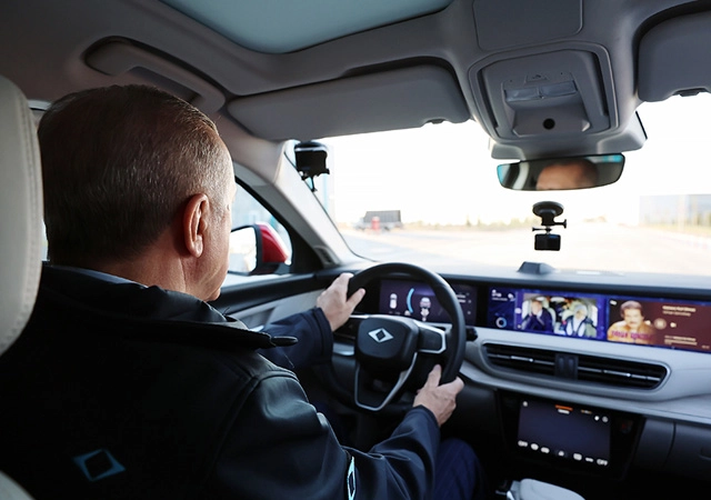 Togg logolu montlar giyen Cumhurbaşkanı Erdoğan ile eşi Emine Erdoğan, sonrasında Togg aracını test etti.