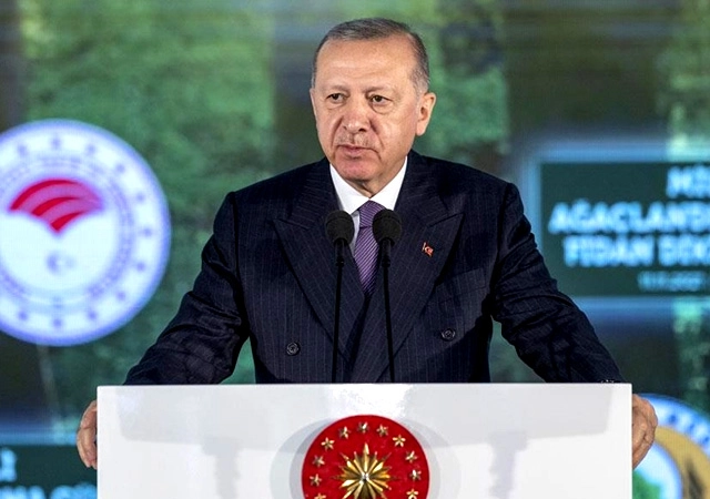 Erdoğan açıklamasında, "Bir tarafta yanan orman alanları, diğer tarafta sel baskınları, öte tarafta kuraklık gibi olaylar bize tabiatın ikazlarıdır. Biz bu ikazları görüyor, mesajı alıyoruz." dedi.