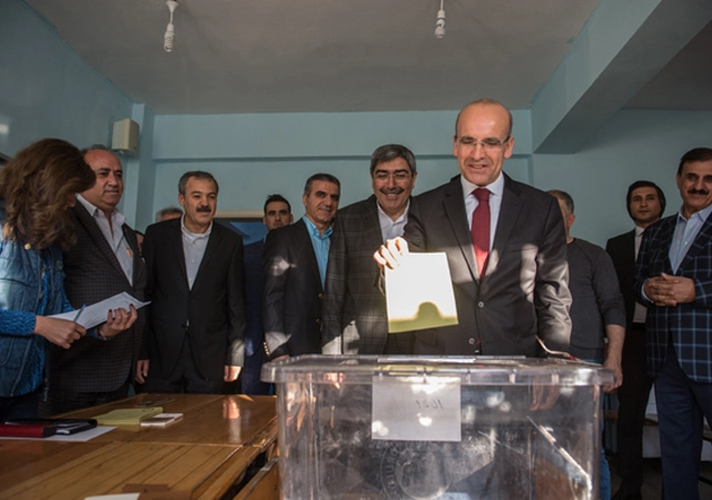Başbakan Yardımcısı Mehmet Şimşek, halk oylaması kapsamında Gaziantep'te oyunu kullandı.