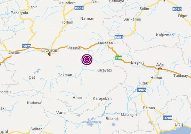 Afet ve Acil Durum Yönetimi Başkanlığının (AFAD) internet sitesinde yer alan bilgiye göre, saat 15.40'ta merkez üssü Erzurum'un Köprüköy ilçesi olan 5.1 büyüklüğünde deprem kaydedildi.